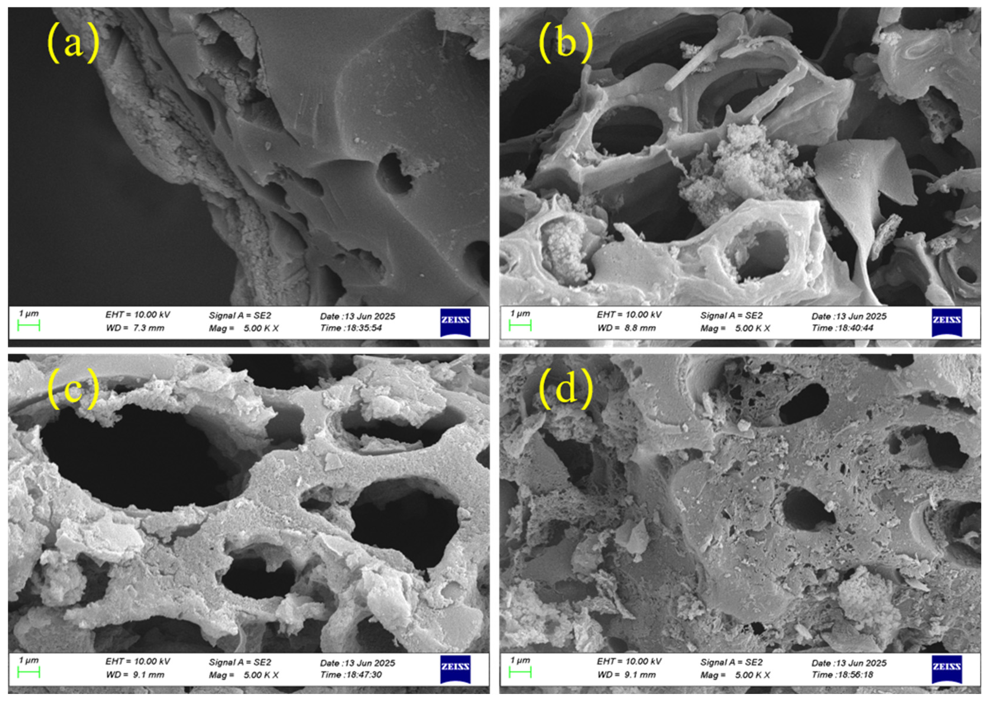 2.1. Characterization of Biochar
