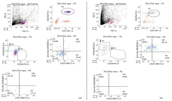 It should be noted that in the control samples, Th1 cells positive for HLA-DR and CD25 individually, as well as the double-positive HLA-DR+/CD25+ cells, exhibited comparable values between the two groups.