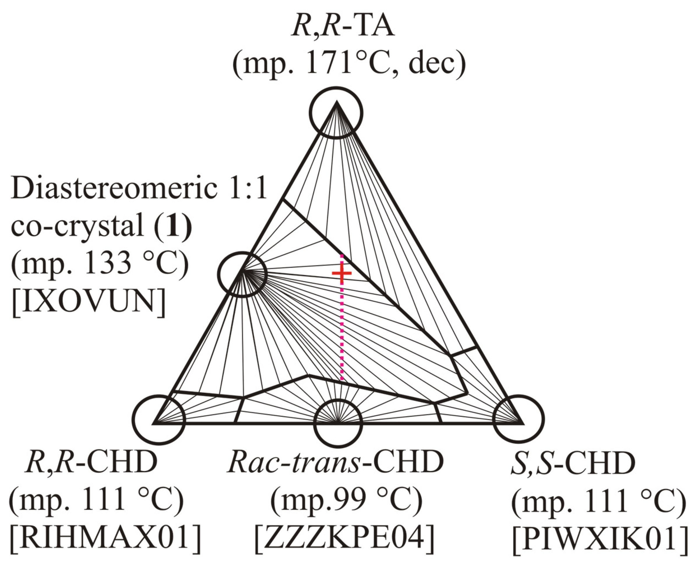 Madarász, J. Compressing Experiences of Optical Resolution Trials, Based on Diastereomeric Salt or Co-Crystal Formation, into Ternary Equilibrium Melting Phase Diagrams of Two Chiral Enantiomers and a Resolving Agent Molecule with the Help of DSC and Powder XRD. Molecules 2026, 31, 623. https://doi.org/10.3390/molecules31040623