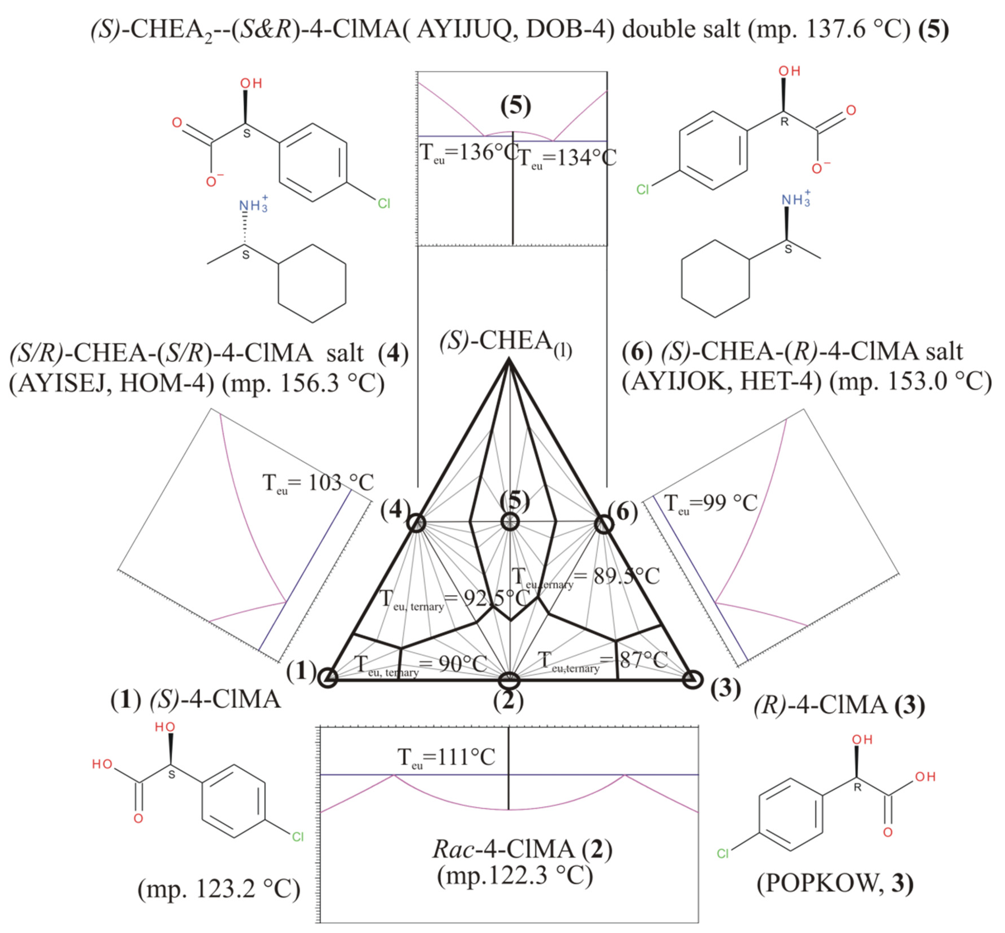 | S-R-salt of 4ClMA with CHEA | (S)-CHEA- -(R)-4ClMA, 6 | 157/430.1 | 26,736 | [16] Data read-outs from the ESI |