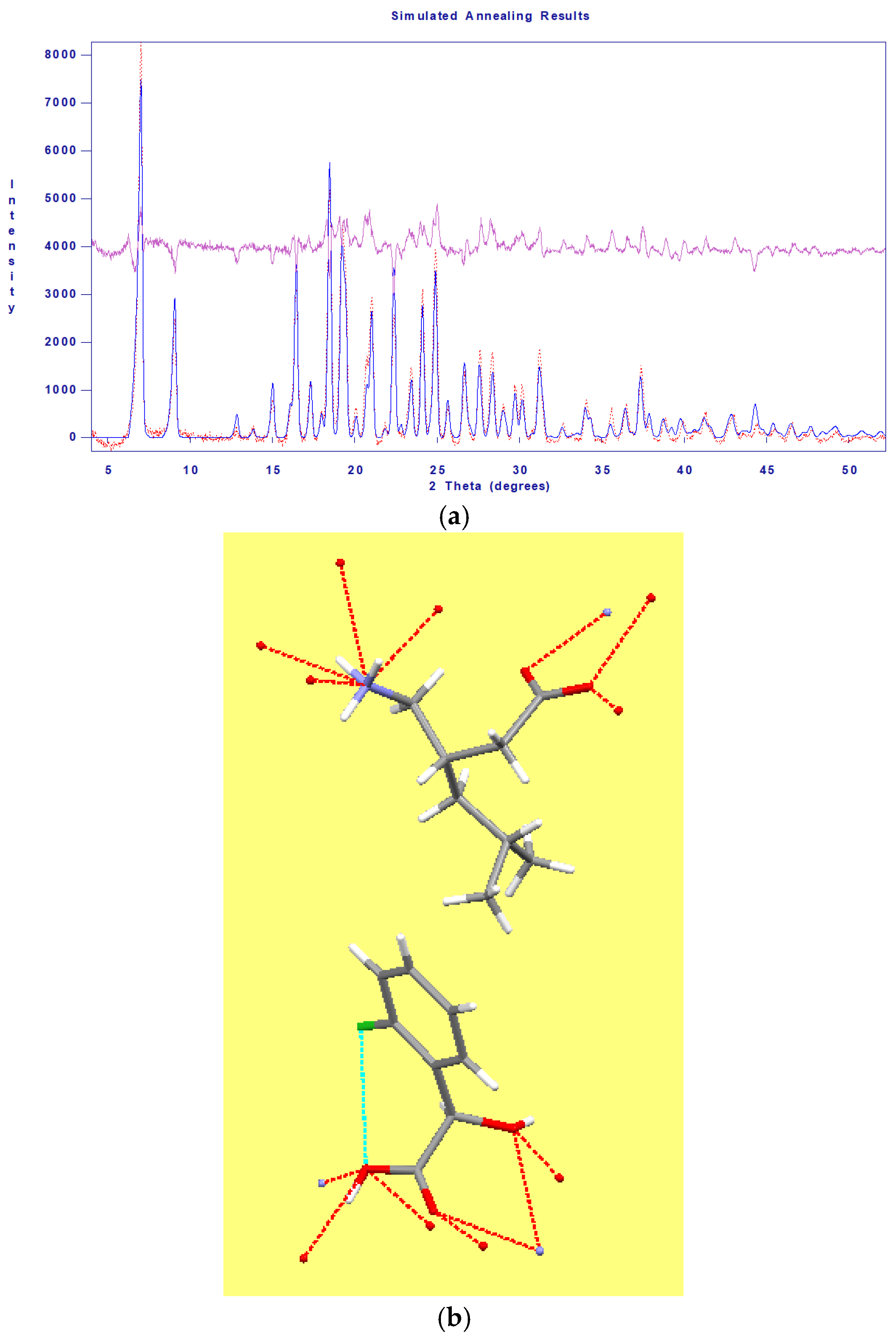 - David, W.I.F.; Shankland, K.; Van De Streek, J.; Pidcock, E.; Motherwell, W.S.; Cole, J.C. DASH: A program for crystal structure determination from powder diffraction data. J. Appl. Crystallogr. 2006, 39, 910–915. [Google Scholar] [CrossRef]