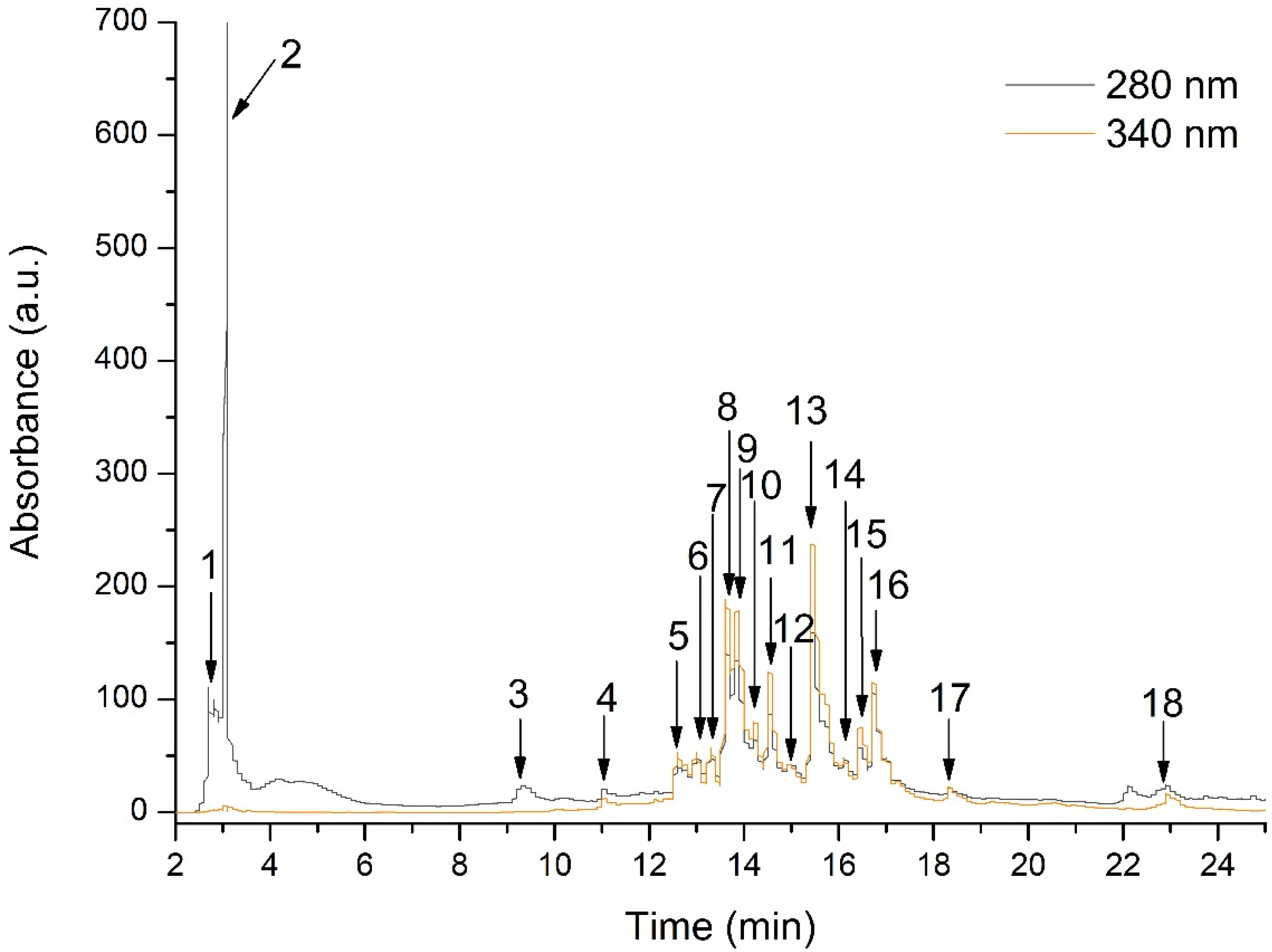 | 14 | 16.11 | 340.270 | 447.271 | Apigenin-methylglucoside 3 | 9.42 ± 0.15 |