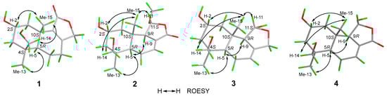 Key ROESY correlations of 1–4.