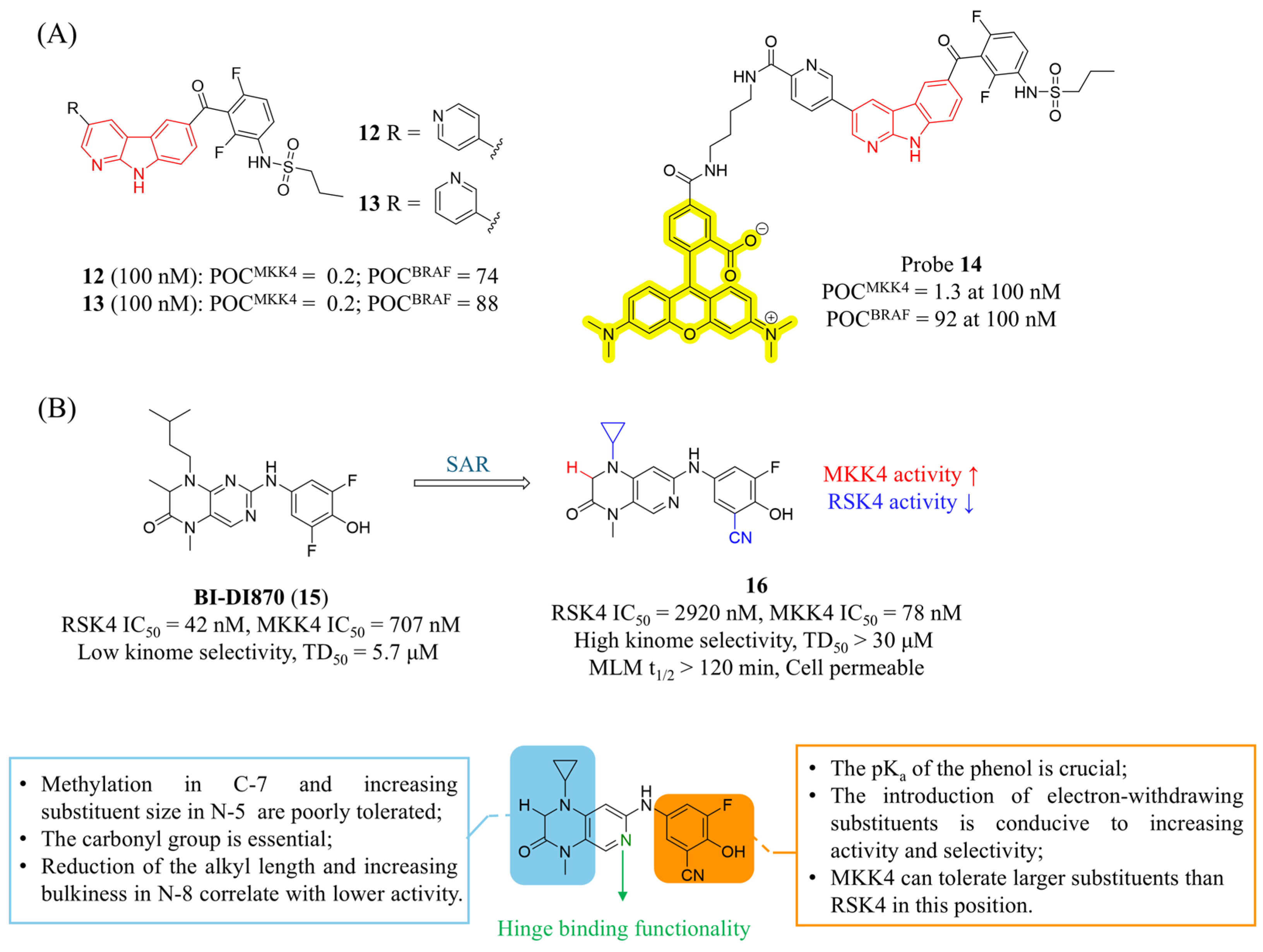 Chicago/Turabian StyleZhao, Min, Baojian Li, Ying Gao, Yan Liang, Nanqi Shao, Xinbo Shi, and Jie Li. 2026. "Targeting the JNK Gatekeepers: Structural Evolution and Medicinal Chemistry of MKK4 and MKK7 Inhibitors" Molecules 31, no. 4: 672. https://doi.org/10.3390/molecules31040672