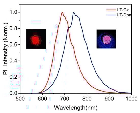 Solid-state photoluminescence spectra of LT-Cz and LT-Dpa.