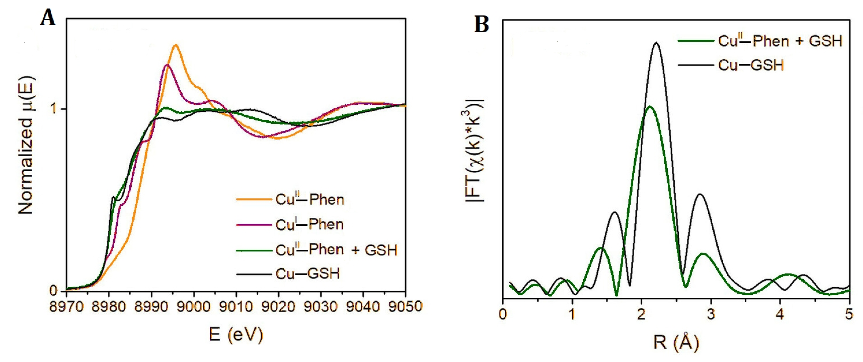 - Falcone, E.; Vigna, V.; Schueffl, H.; Stellato, F.; Vileno, B.; Bouraguba, M.; Mazzone, G.; Proux, O.; Morante, S.; Heffeter, P.; et al. When Metal Complexes Evolve, and a Minor Species is the Most Active: The Case of Bis(Phenanthroline)Copper in the Catalysis of Glutathione Oxidation and Hydroxyl Radical Generation. Angew. Chem. Int. Ed. Engl. 2025, 64, e202414652. [Google Scholar] [CrossRef]