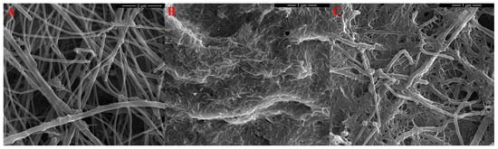 Images of transducer media surfaces: (A) carbon nanofiber layer, (B) multi-walled carbon nanotube layer, and (C) nanocomposite of multi-walled carbon nanotubes and carbon nanofibers.