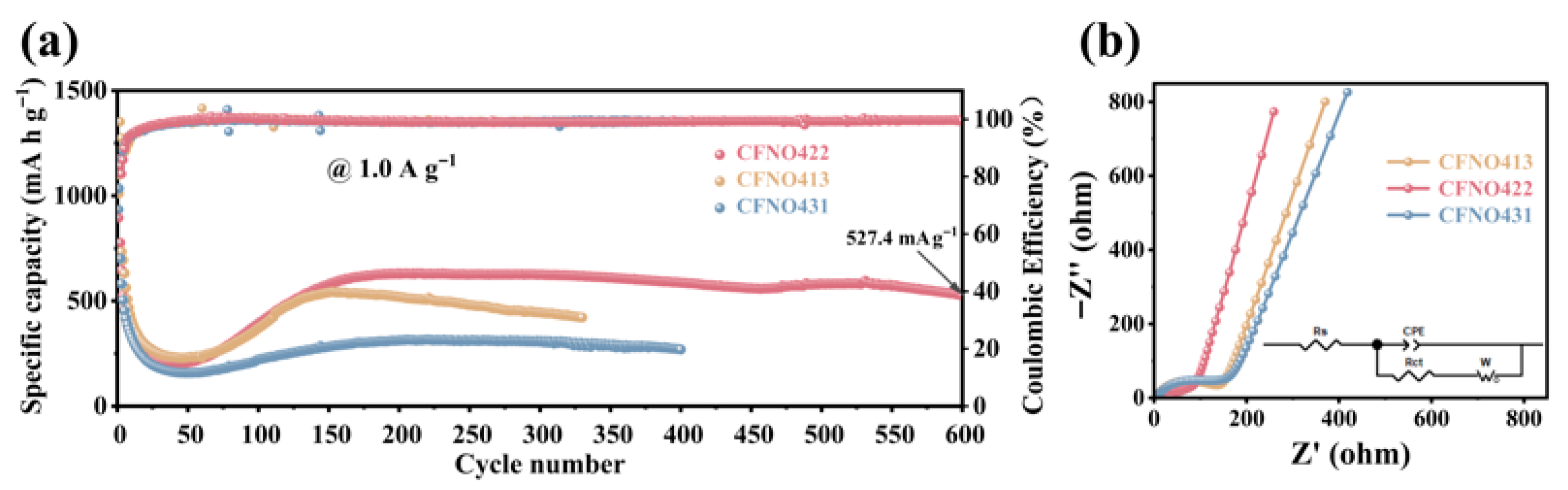 - Wang, W.; Yao, X.; Ma, Z.; Zhou, J.; Lu, Z.; Sun, J.; Cui, J.; Sha, J. NC coating MOF-derived CoFe2O4/C spinel for high performancelithium-ion batteries anode. Chem. Eng. J. 2025, 515, 163912. [Google Scholar] [CrossRef]