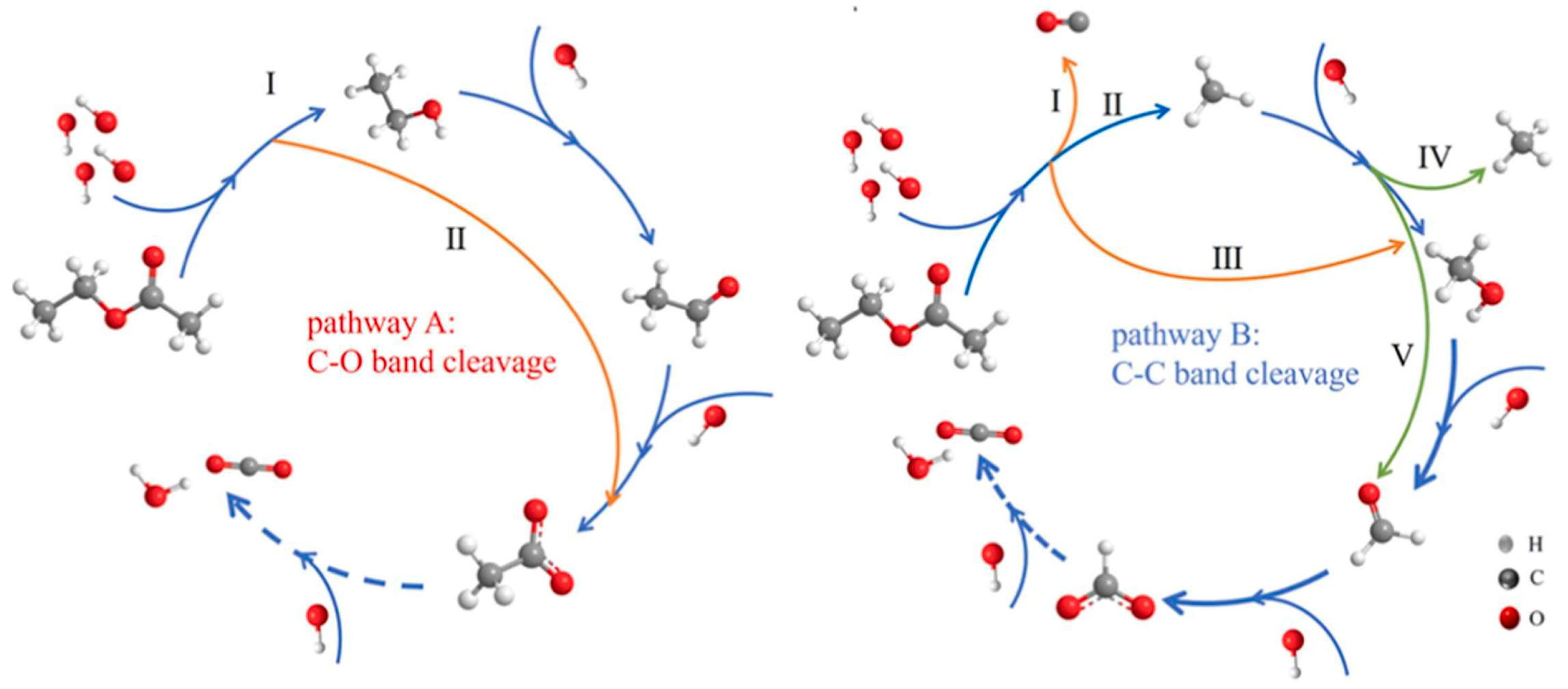 - Zhang, L.N.; Bao, Q.Q.; Zhang, B.J.; Zhang, Y.B.; Wan, S.L.; Wang, S.; Lin, J.D.; Xiong, H.F.; Mei, D.H.; Wang, Y. Distinct role of surface hydroxyls in single-atom Pt1/CeO2 catalyst for room-temperature formaldehyde oxidation: Acid-base versus redox. J. Am. Chem. Soc. Au 2022, 2, 1651–1660. [Google Scholar] [CrossRef]
