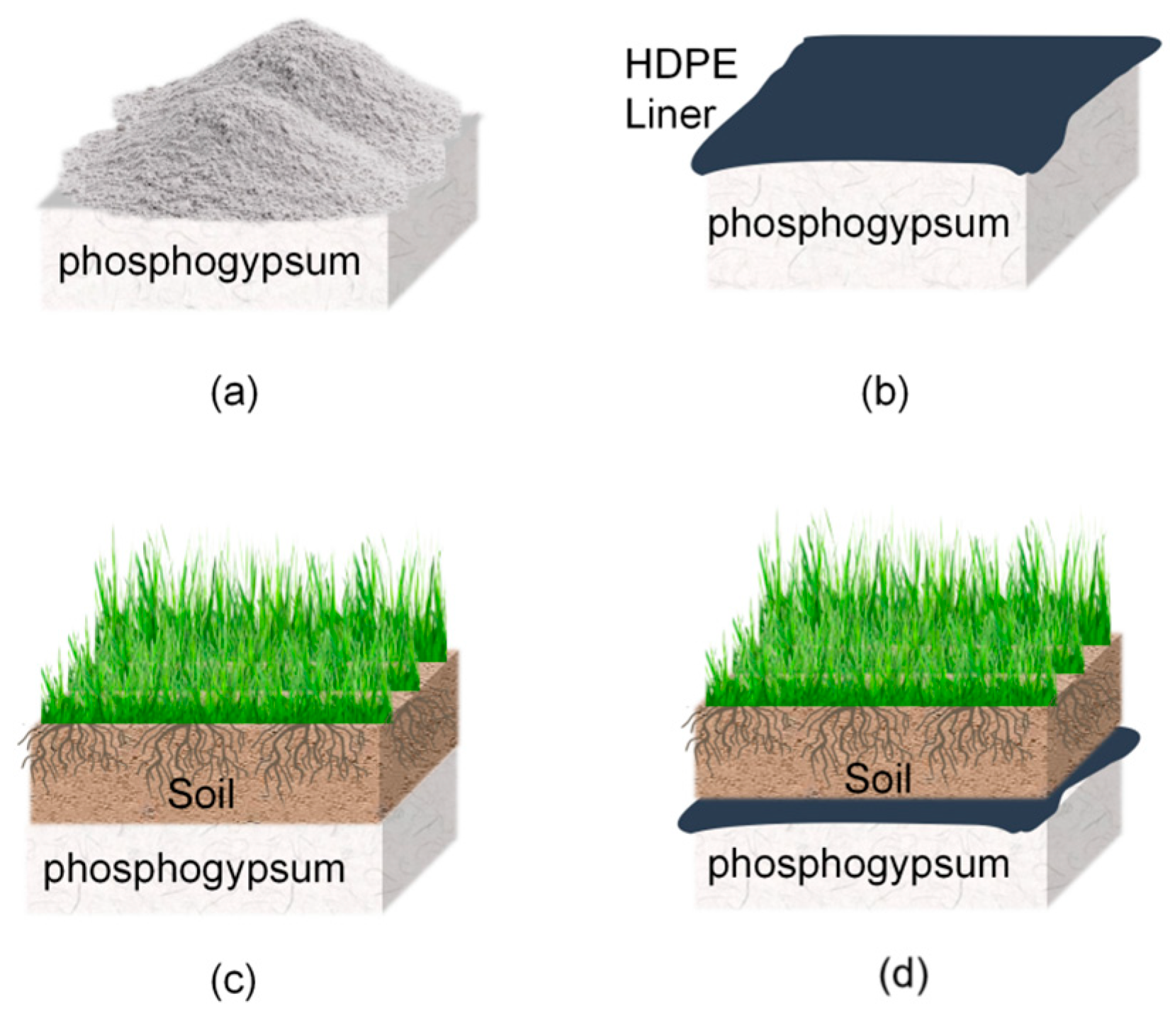 - Komnitsas, K.; Lazar, I.; Petrisor, I.G. Application of a vegetative cover on phosphogypsum stacks. Miner. Eng. 1999, 12, 175–185. [Google Scholar] [CrossRef]