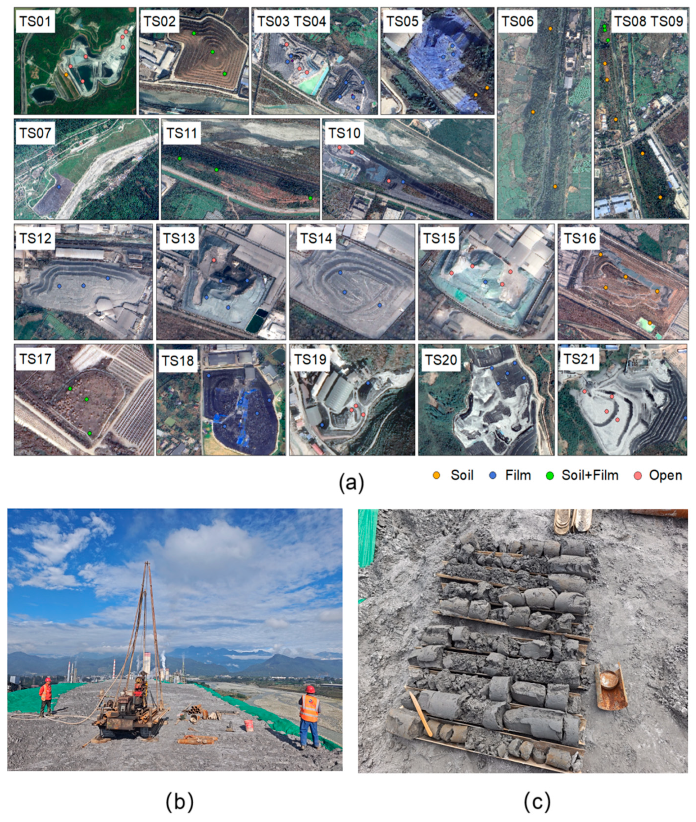 - Huang, J.; Lin, Y.; Chen, Y.; Xie, X.; Cui, X.; Li, C. Study on Tailings Covering System Constructed by Geological Polymerization of Mine Waste. Part 2: Simulation of Oxidation Inhibition of Overburden on Acid-producing Tailings. Bull. Environ. Contam. Toxicol. 2022, 110, 25. [Google Scholar] [CrossRef]