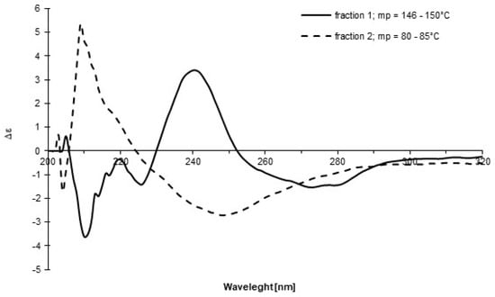 The CD spectra of two fractions obtained during purification process of 1 recorded in DCM.