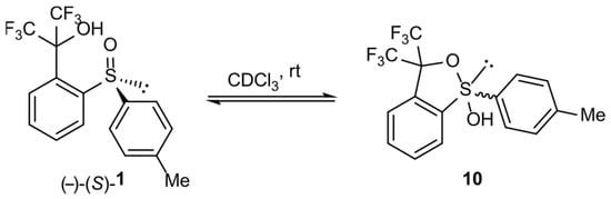 Reversible transformation of sulfinyl derivative 1 into hydroxysulfurane structure 10 in solution.
