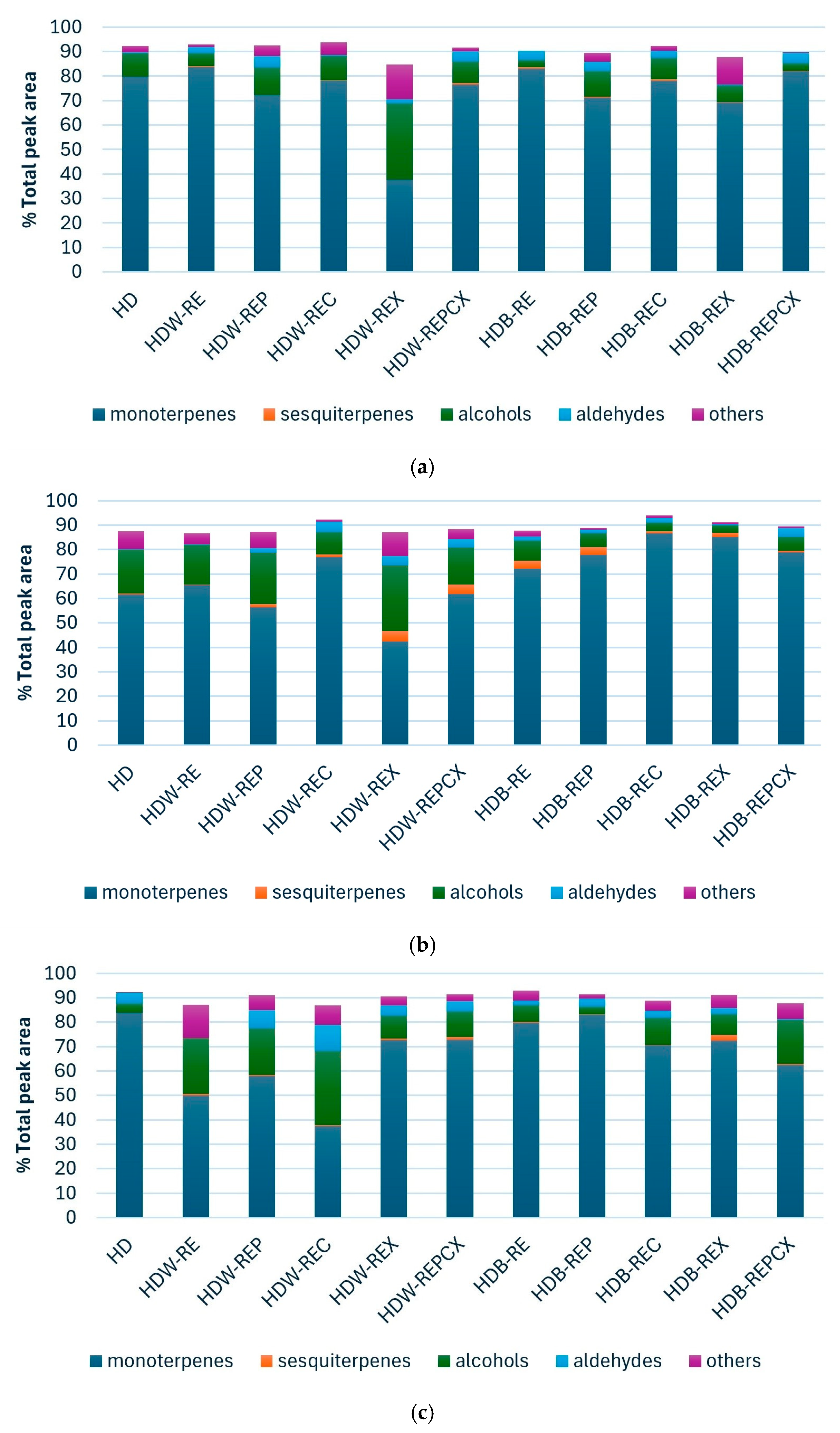 | HDB–REPCX | hydrodistillation with reflux extraction pretreatment assisted by pectinase/cellulase/xylanase enzymes in citrate buffer |