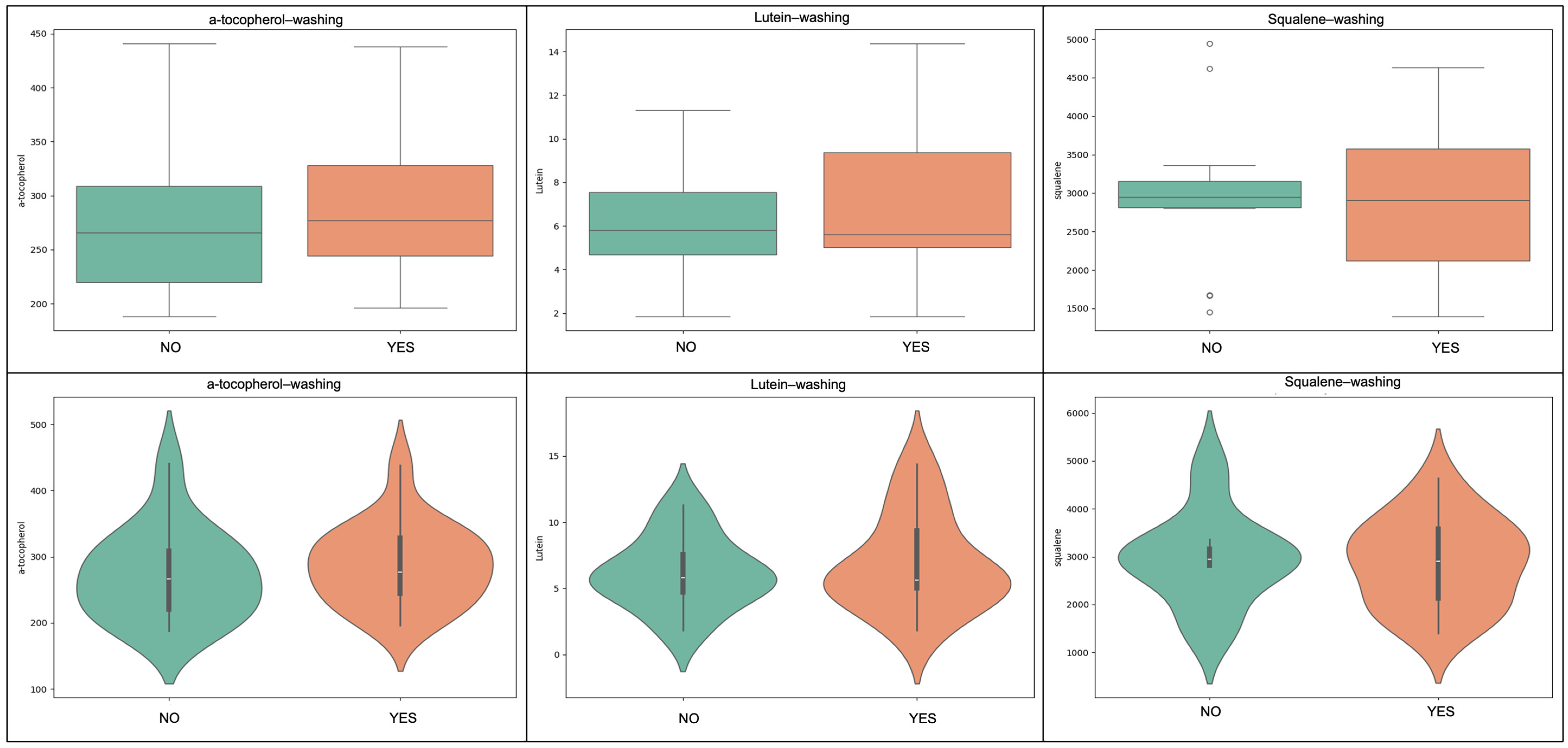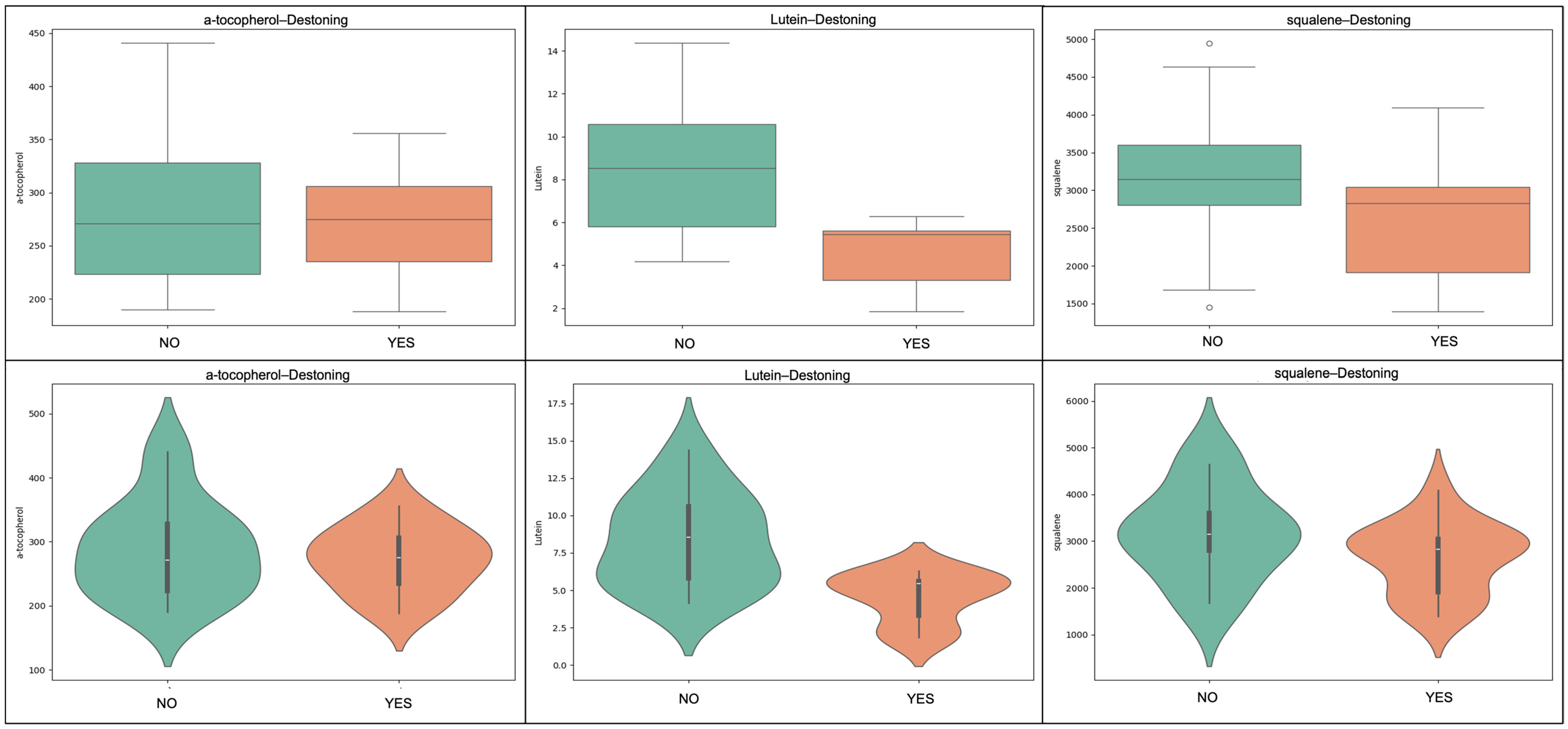 | Sample/Analyte | α-Tocopherol | (β + γ)-Tocopherol | Squalene | Lutein |