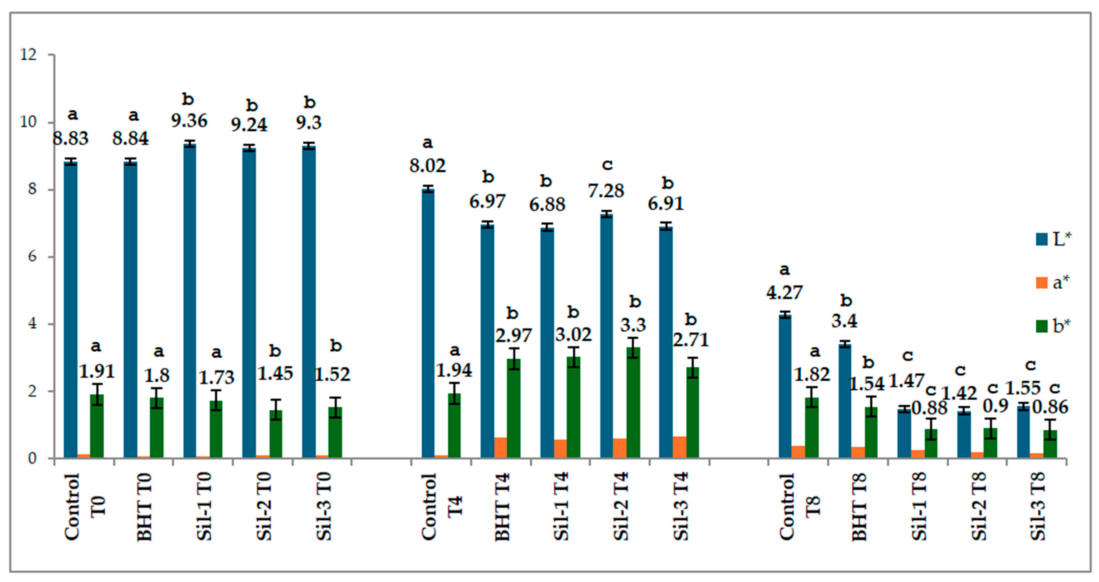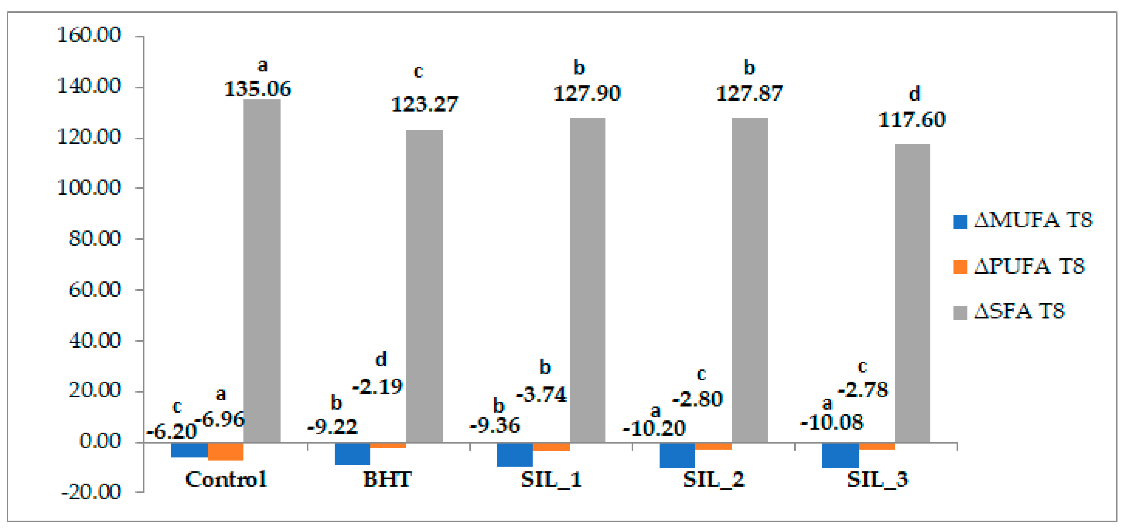 | 8 | SIL_2_T4 | 10.63 ± 0.01 c | 32.02 ± 0.66 a | 53.28 a |