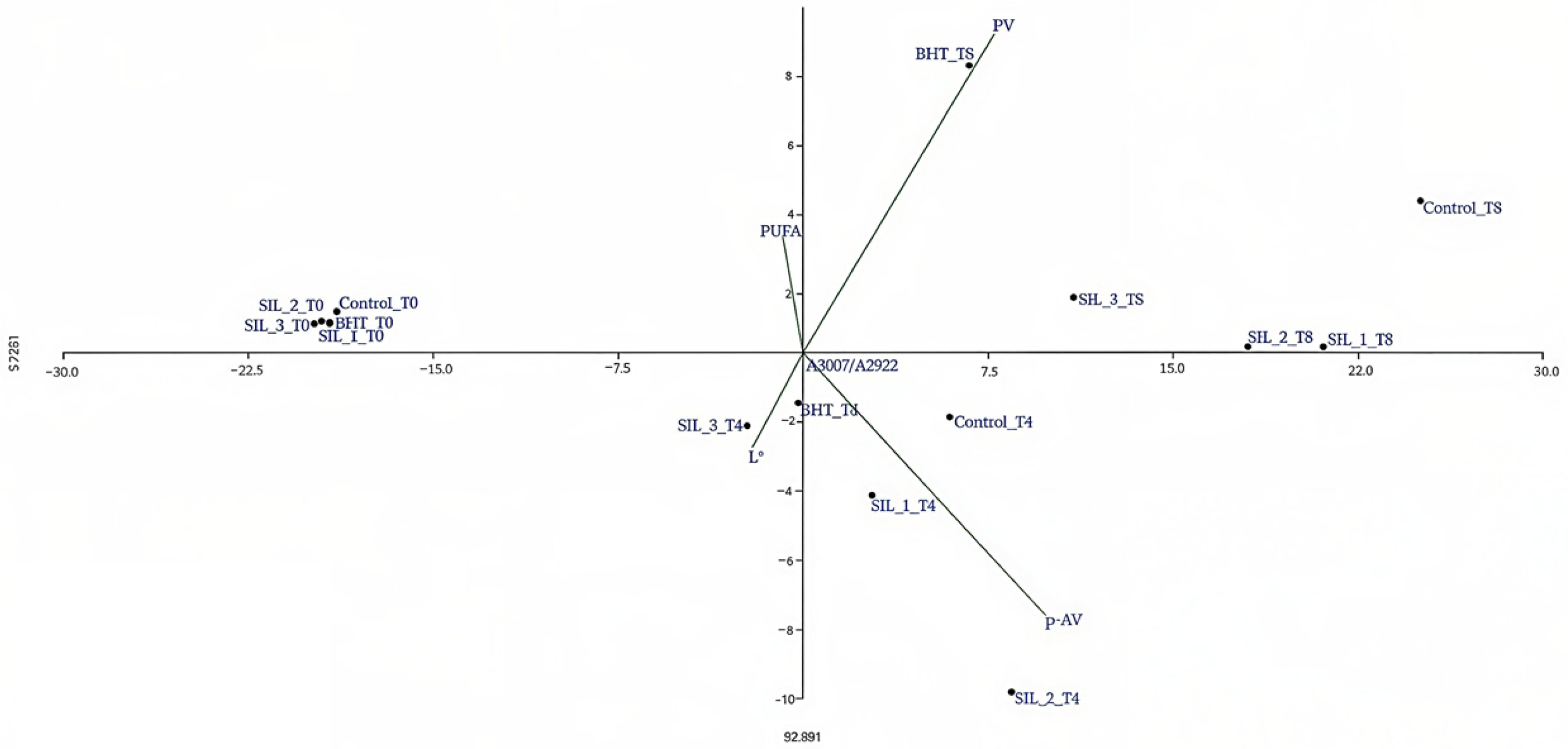 - Thermal treatment significantly increased PV, p-anisidine, and TOTOX, indicating progressive oxidation.