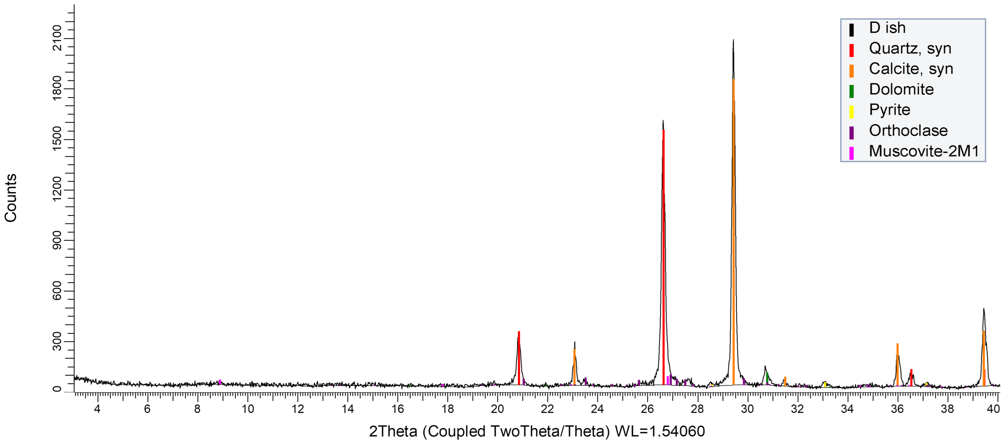 The core mineral composition is predominantly carbonates (calcite 54%, dolomite 2%) and quartz (29%). The contents of potassium mica (muscovite) and potassium feldspar are both 7%. The proportion of pyrite is minor, amounting to 1%.