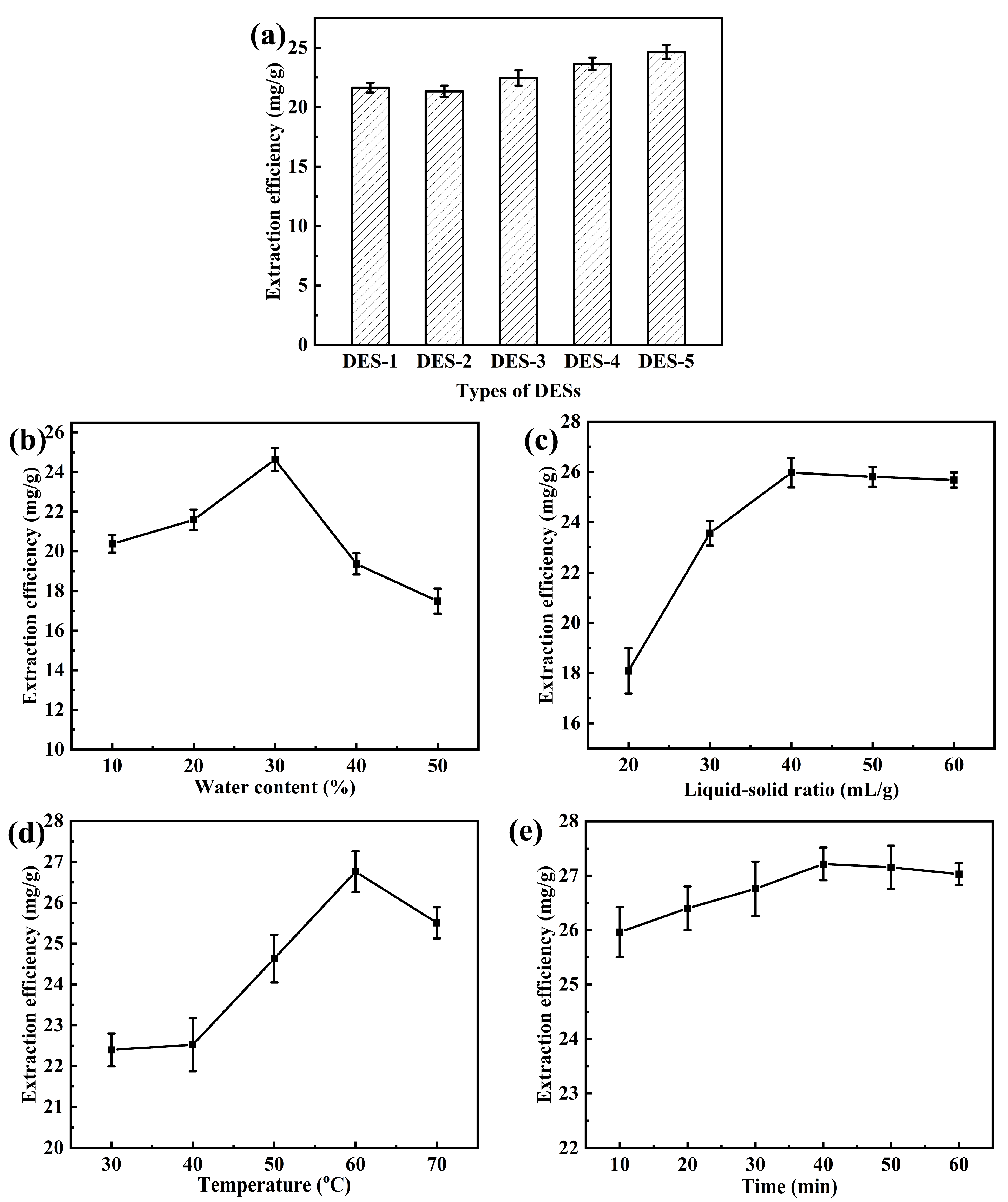 2.1.1. Effect of the DES Types on the Extraction Efficiency