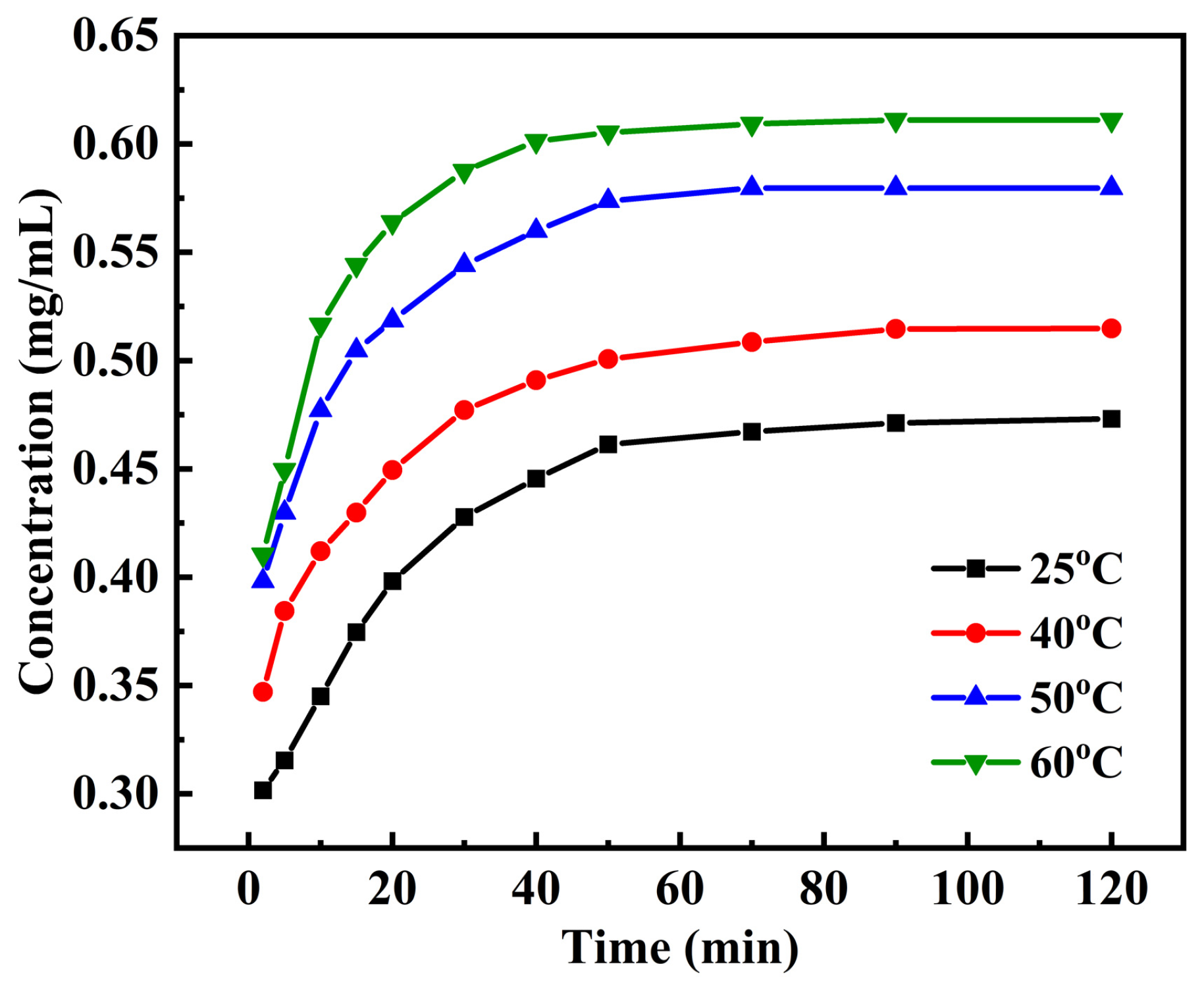 2.1.4. Effect of Temperature on the Extraction Efficiency