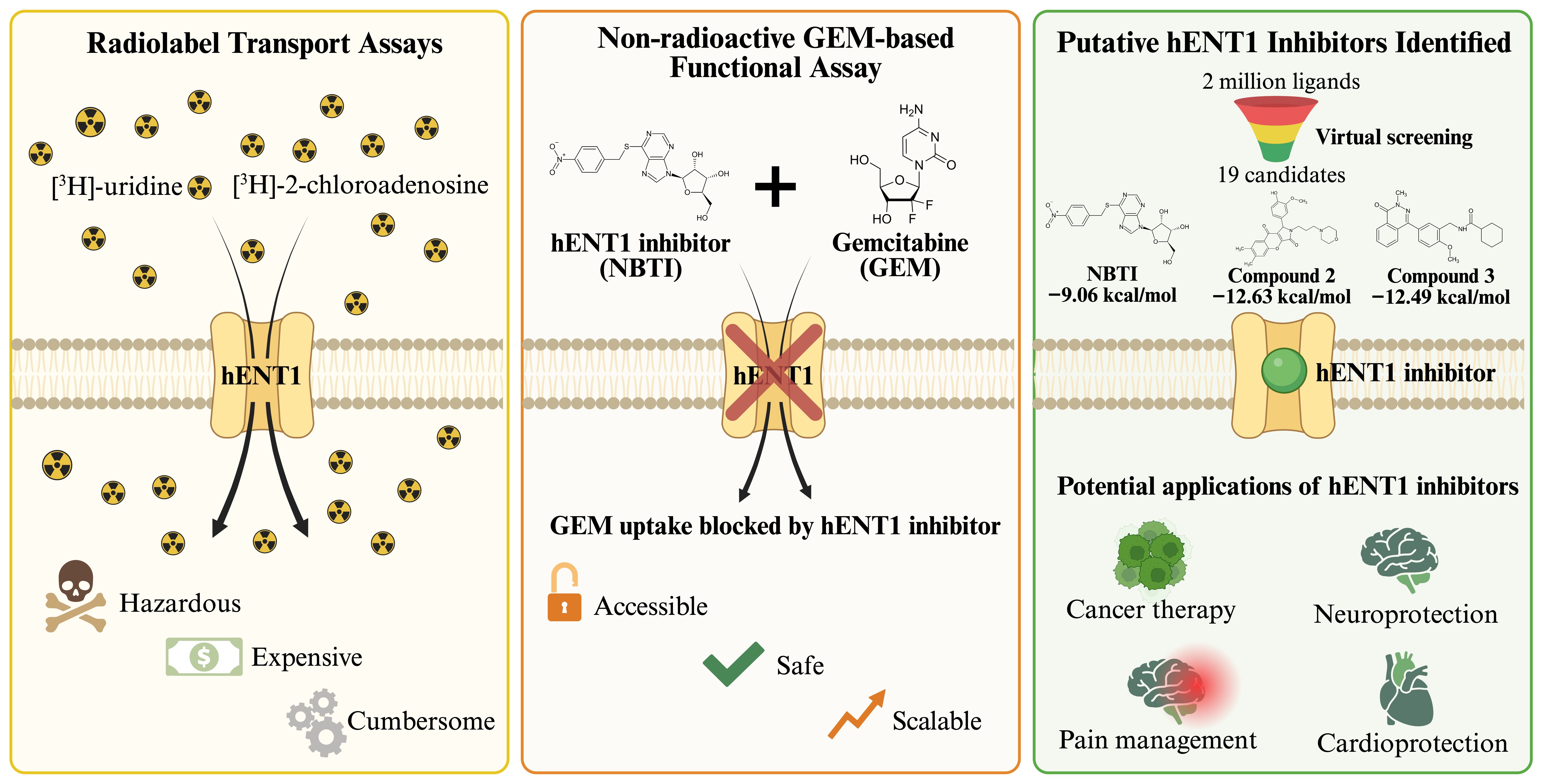 Kremesh, S.; Ramadan, A.; Moutraji, S.A.; Hasan, S.; Mahgoub, R.E.; Coe, I.R.; Sammani, N.; Abuamer, L.; Atatreh, N.; Ghattas, M.A. Identification of Putative Equilibrative Nucleoside Transporter Inhibitors Through Dual-Pharmacophore Virtual Screening and Validation in a Gemcitabine-Based Cell Assay. Molecules 2026, 31, 1293. https://doi.org/10.3390/molecules31081293