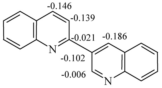 As 4 f from 0.64 g (2.5 mmol) 2,3’-biquinolyl, 0.05 g (7 mmol) Li, 0.72 g (3.5 mmol) 1-bromonaphthalene and 0.71 g (5 mmol) MeI. Yield 0.73 g (73%), m.p. 151-153 °C (benzene-hexane). 1H NMR spectrum (CDCl3): 3.51 (3H, s, Me); 6.59 (1H, s, 4’-H); 6.77 (1H, d. d., J5'6' =7.78, J6'7'= 7.62 Hz, 6'-H); 6.88 (1H, d, J7'8' = 8.04 Hz, 8'-H); 7.1 (1H, d. d., J6'7' = 7.62, J7'8' =8.04 Hz, 7'-H); 7.23-7.28 (4H, m, 5’-H, 6’-H, 3’’-H, 6’’-Í); 7.49 (1H, d, J34 = 8.79 Hz, 3-H); 7.51-7.8 (7H, m, arom.); 7.81 (1H, d, J34 = 8.88 Hz, 4-H); 7.83 (1H, s, 2'-H); 8.99 (1H, d, J = 8.54, 8’’-H or 8-H); determined, %,: C 87.64; H 5.47; N 6.89. C29H22N2. Calculated, %: C 87.41; H 5.56; N 7.03.