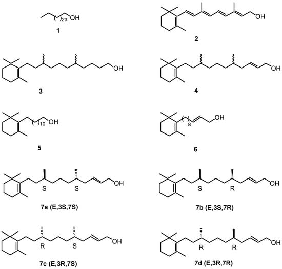 Structure of n-hexacosanol (1), retinol (2), and its elongated analogues (3-7).