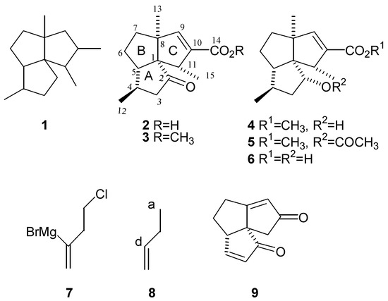 - Mehta, G.; Srikrishna, A. Synthesis of Polyquinane Natural Products: An Update. Chem. Rev. 1997, 97, 671–719. [Google Scholar] [CrossRef] [PubMed]