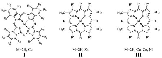 They were obtained by refluxing anhydrous chloride copper and acetate cobalt with compounds IIIb-12 in chloroform for 1-2 h. The end of reaction defined by spectroscopy based on the disappear- ance of the absorption bands of the metal-free porphyrin. Then the products were filtered, the filtrate was steamed and purified by chromatography on aluminium oxide (neutral) with chloroform, then with a mixture of hexane-chloroform; isolated yields were 60% The correct fractions were selected based on spectroscopic analyses.