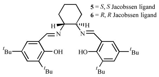 - Martinez, L.E.; Leighton, J.L.; Carsten, D.H.; Jacobsen, E.N. J. Am. Chem. Soc. 1995, 117, 5897. Larrow, J.F.; Schaus, S.E.; Jacobsen, E.N. J. Am. Chem. Soc. 1996, 118, 7420. Schaus, S.E.; Larrow, J.F.; Jacobsen, E.N. J. Org. Chem. 1997, 62, 4197.