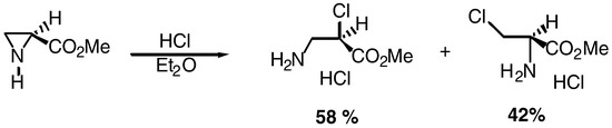 The mechanism and regioselectivity of the acid catalyzed ring-opening of the nonactivated aziridine-2-carboxylates may exhibit important differences, depending on the conditions used, as it was demonstrated by E. Kyburz et al. [4], Scheme 1.