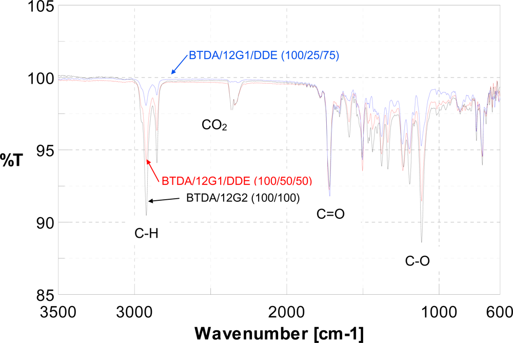 - Polyimide Based on BTDA /12G2-AG-Terphenyldiamine /DDE (100/50/50). IR (ATR): 2924, 2853 (C-H), 1721 (C=O), 1193, 1115 (-O-) cm−1.