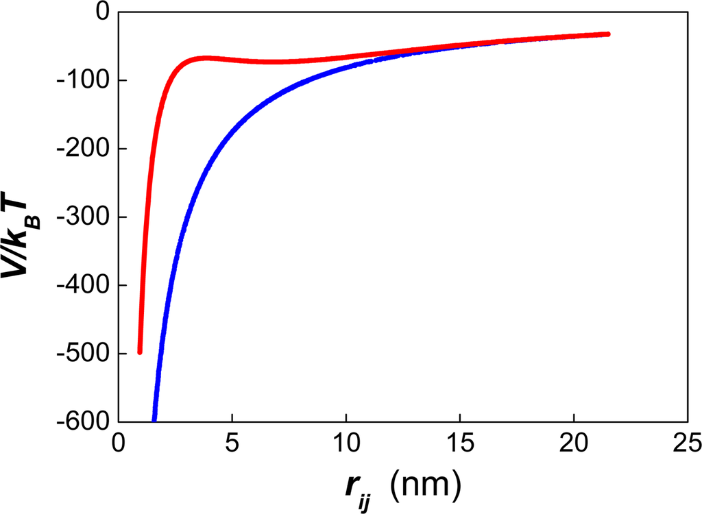 In Equations (21)–(25), ɛ0 is the permittivity of vacumm, ɛ the dielectric constant, κ−1 the Debye length, and ΦP = Ψ0 e/kB T the reduced electrostatic potential of the particle at its surface. The relation between the surface charge and the surface potential is given by: