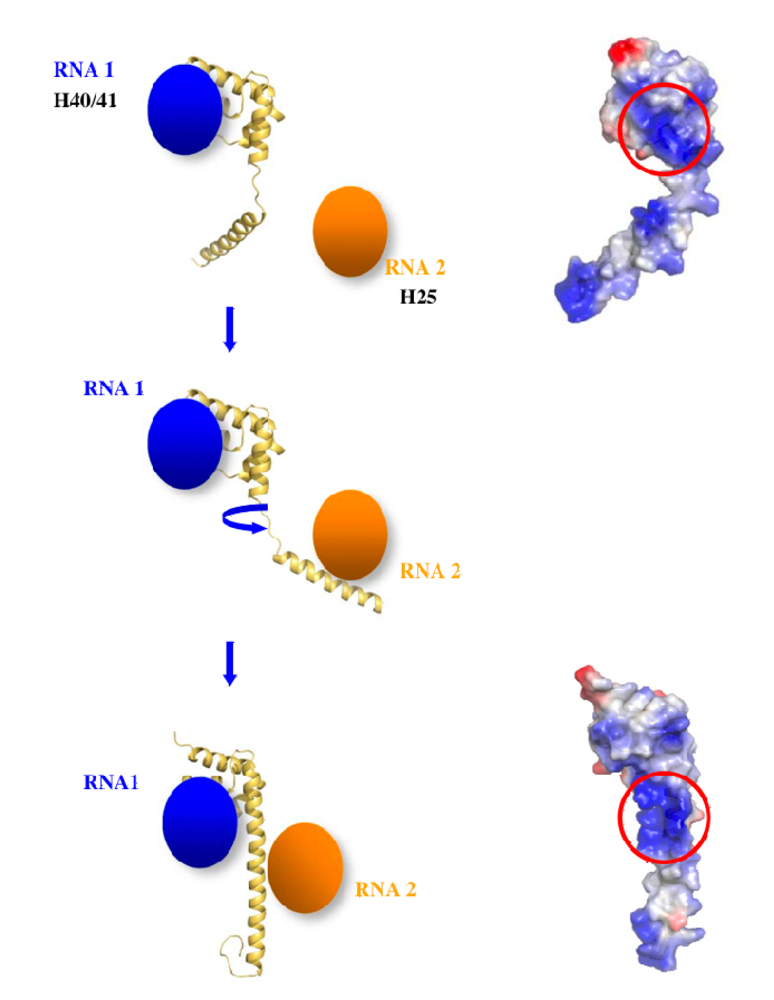 (iii) The transient unfolding of the long α-helix may be required for fitting into the extremely narrow groove of the H40/41 helix junction (