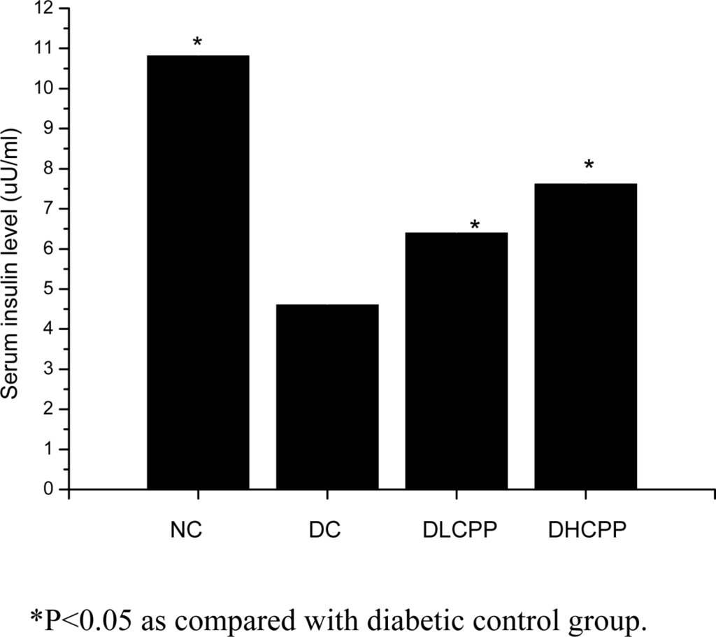 Effect of CPP on serum insulin level in mice.*P<0.05 as compared with diabetic control group.