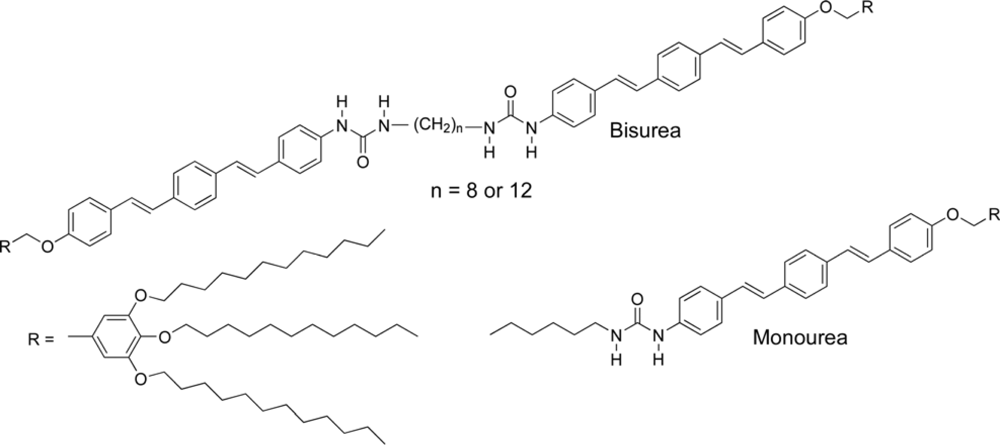 Urea-featuring oligo(p-phenylene vinylene)s.