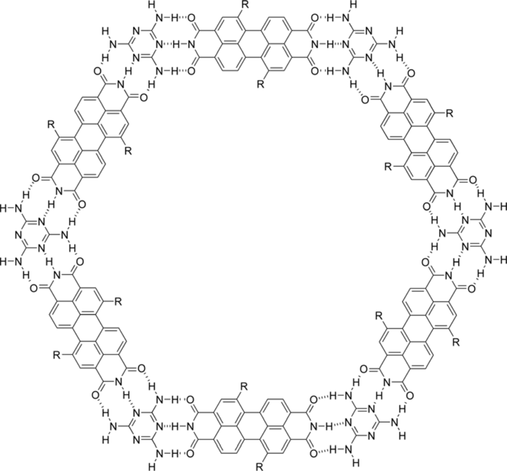Aggregate structures of perylene bisimide upon hydrgen bonding assembly.
