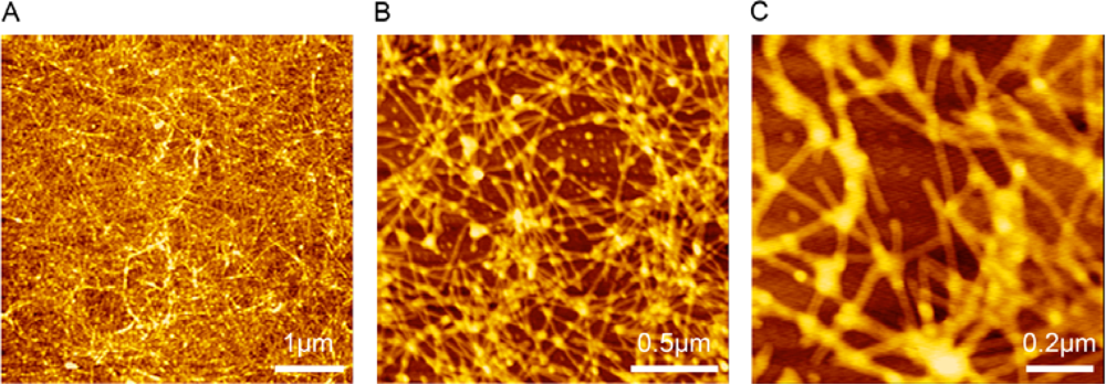 3.3. Self-Assembly Assessment of RADA16-I with Atomic Force Microscopy