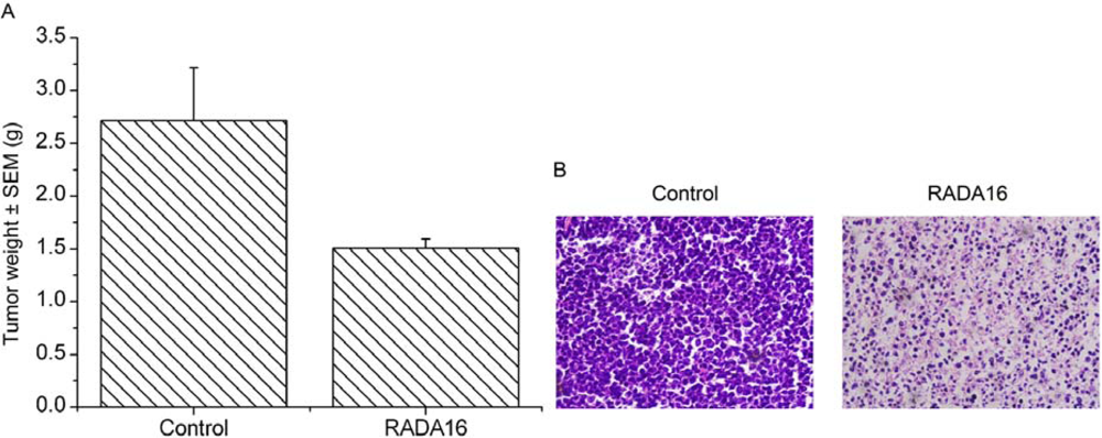 Tang, C.; Shao, X.; Sun, B.; Huang, W.; Zhao, X. The Effect of Self-Assembling Peptide RADA16-I on the Growth of Human Leukemia Cells in Vitro and in Nude Mice. Int. J. Mol. Sci. 2009, 10, 2136-2145. https://doi.org/10.3390/ijms10052136