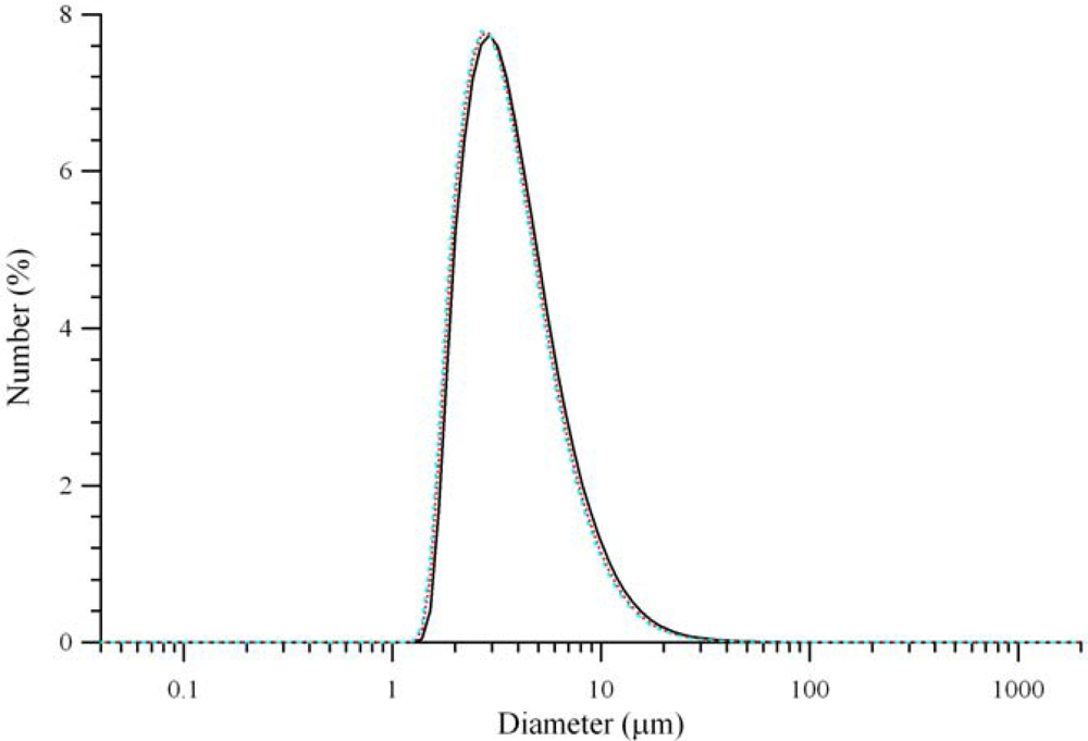 Size Analysis: dimensional analyses were carried out by using a Coulter LS230 Laser Diffraction Particle Size Analyzer, equipped with small volume module plus. Nanoparticle suspensions were added into the cell until 30 – 50% obscuration of PIDS detector was reached. Deionised water was used as background and diameter distribution was processed using the Fraunhofer optical model. Three runs were performed on each sample.