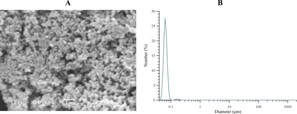 Nanoparticles with good morphology and an average diameter size of about 65 nm were prepared using this technique (Figure 3).
