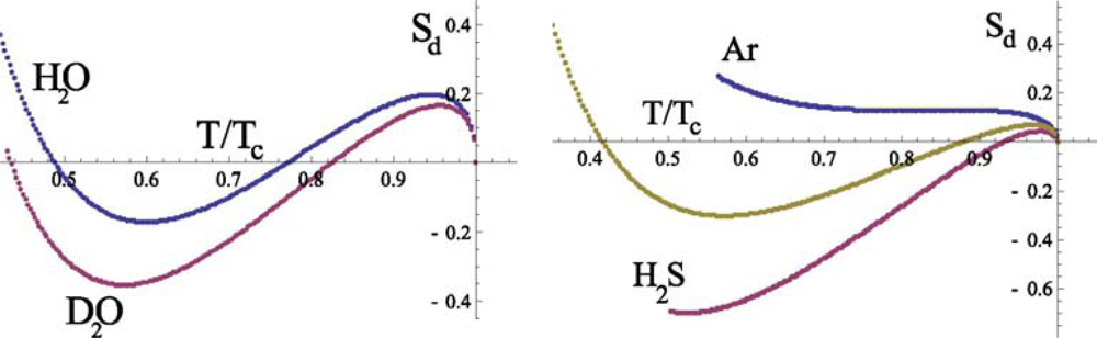 for normal and heavy water (D2O) is presented in Figure 6. For the comparison the entropy diameter for argon as well as for the water homologues H2S and molecular oxygen O2 are also presented in Figure 6. We see that the behavior of