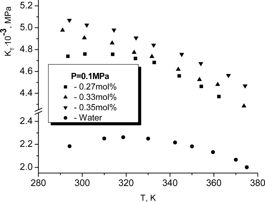 Supplement 2. Qualitative analysis of the water isothermic compressibilityBy the definition, the isothermic compressibility for water is described by the standard expression []: