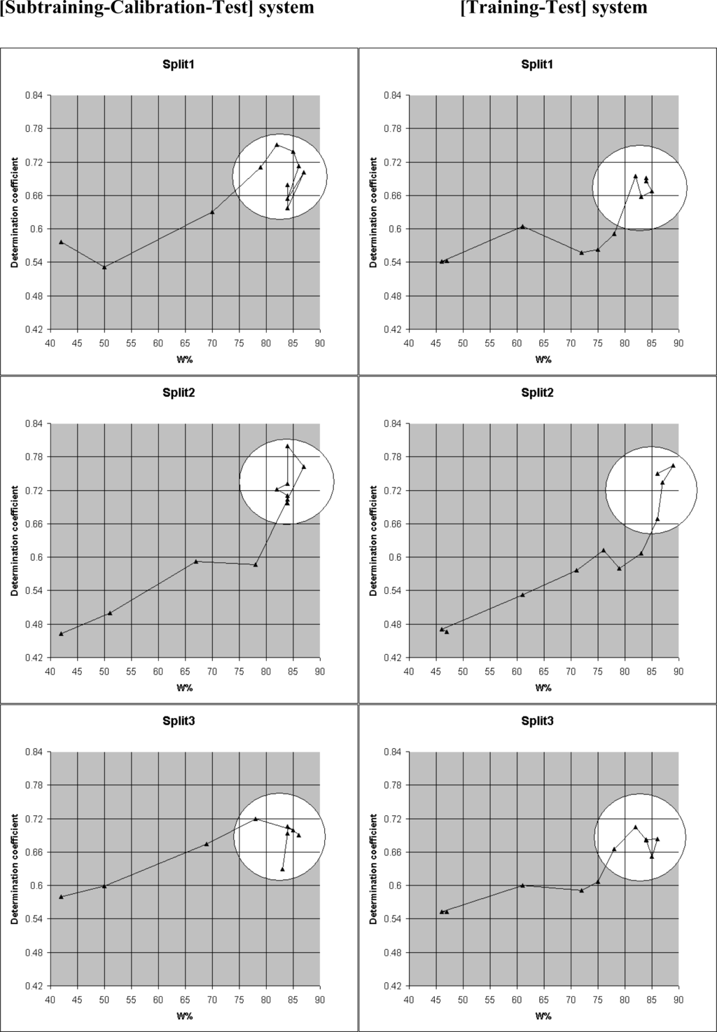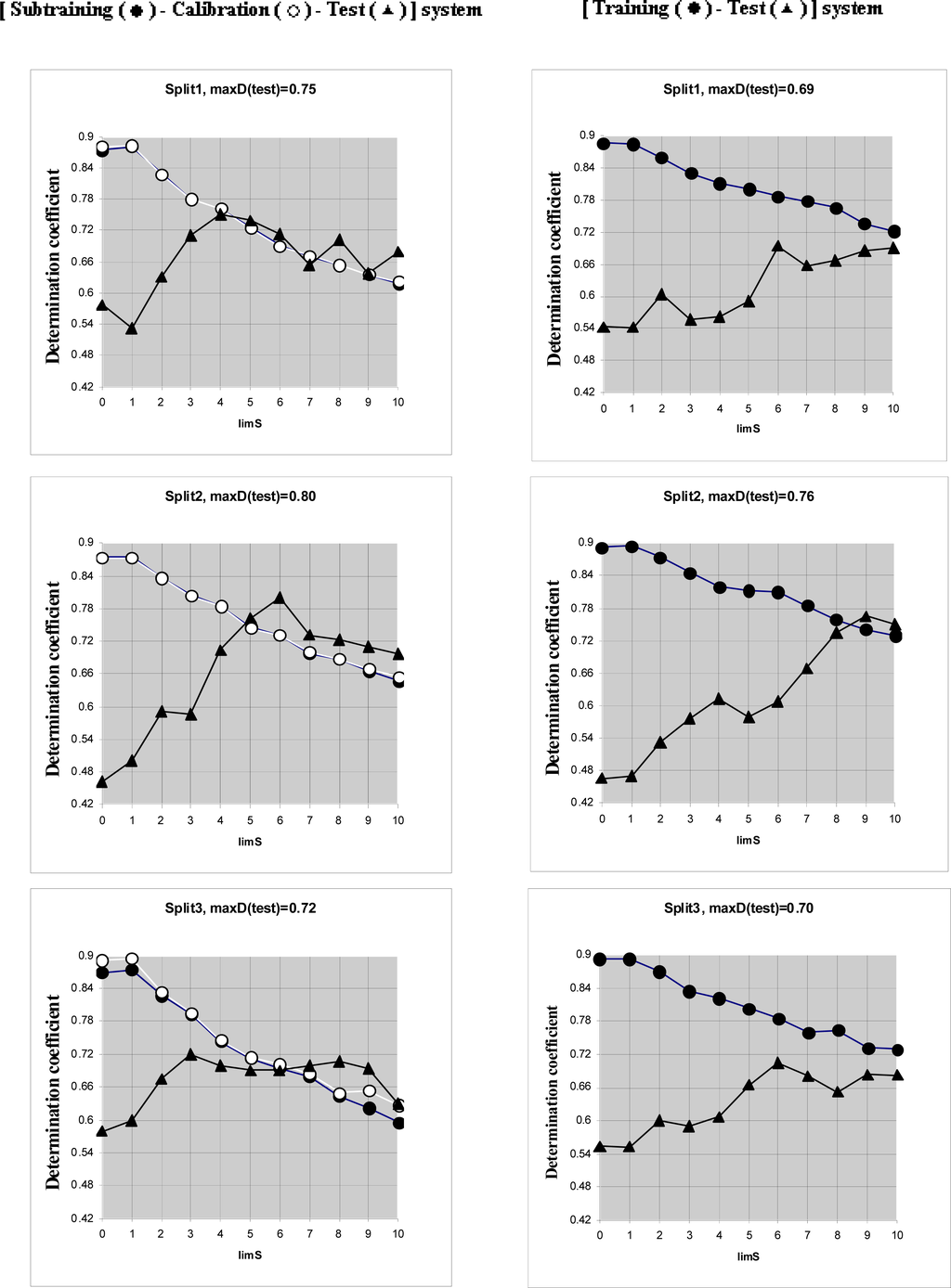 - - The correlation balance, i.e., the [Subtraining-Calibration-Test] system gave models which are better in comparison with models obtained with the more traditional [Training-Test] system.