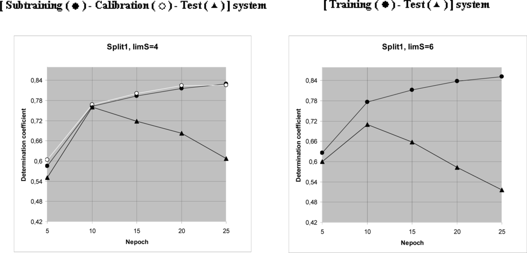 - - The correlation balance, i.e., the [Subtraining-Calibration-Test] system gave models which are better in comparison with models obtained with the more traditional [Training-Test] system.