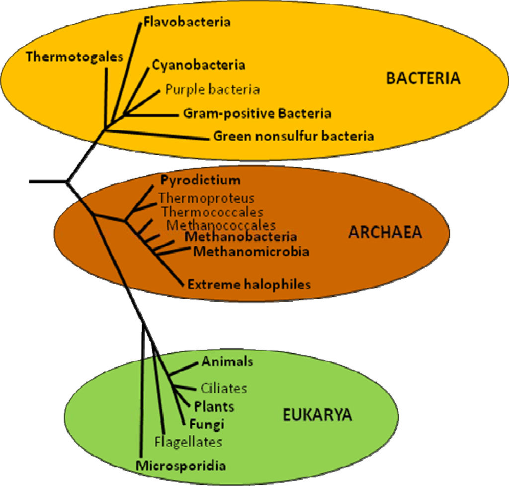 Evolutionary history of trehalose biosynthesis. The trehalose biosynthetic pathways are present in the three domains of life tree. Phyla in bold letters show organisms that have at least one of the five routes of trehalose biosynthesis.