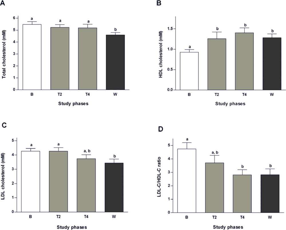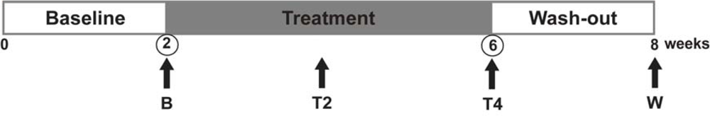 | Treatment (4 weeks) | 4.2 ± 1.5 | 6.9 ± 1.4 | 4.5 ± 0.9 |