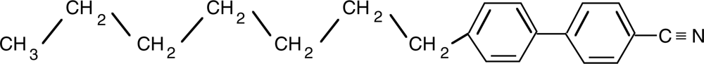 As an example of compound that can be in both nematic and smectic A phases we cite the very much used octyl-4-cyanobiphenyl (8CB) with chemical formula shown in Figure 4, which is smectic A between 24 °C and 34 °C, and nematic between 34 °C and 42.6 °C.