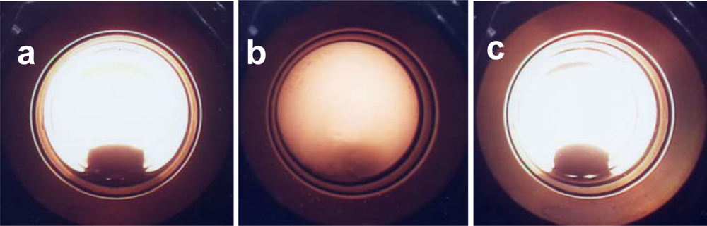 Before the reaction, the phase behavior was studied with a high-pressure view cell (cell volume: 10 mL attached sapphire windows), as it is an important concern for a better understanding of the operation of the catalytic system in scCO2. The solubility of CAL in a mixture of CO2 and H2 is estimated from the phase behavior inspection at 50 °C. From the visual observation, it has been found that at constant H2 pressure of 1 MPa, the solubility of CAL increases with increasing CO2 pressure from 6 MPa to 12 MPa and a homogeneous phase is obtained at above 12 MPa, and transition phase from gas-liquid two-phase to a supercritical phase (single) at 9 MPa of CO2 was observed (Figure 5).