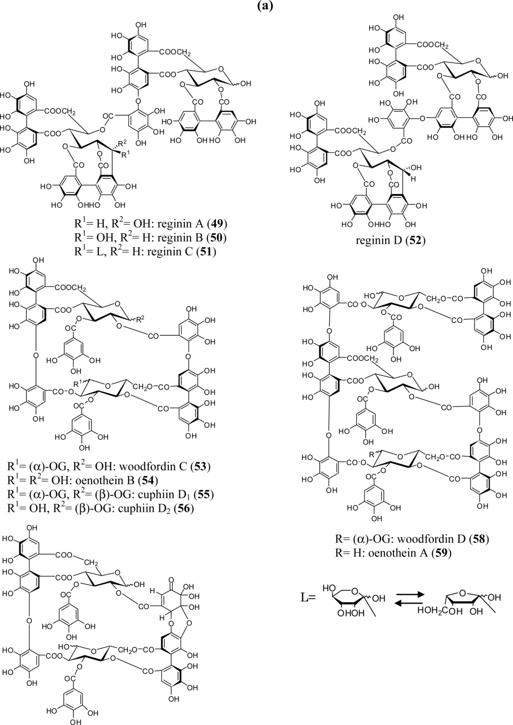 (a) Structures of ellagitannin oligomers 49–59. (b) Structures of ellagitannin oligomers 60 and 61.